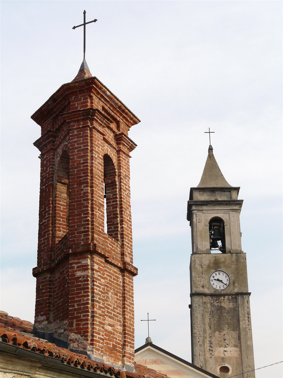 Campanili dell'oratorio dei displinanti (sinistra) e della chiesa dell'Immacolata Concezione (destra), Cosseria, Liguria, Italia
